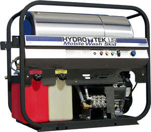 The heavy-duty, hot water SS Series mobile wash skid has been the proven choice of professionals for many years because of its low maintenance requirements and reliability. Available pressure ranges from 3000 to 4000psi, flow from 3 to 5.5gpm, matched with industrial gas or diesel engines for maximum duty. Simple controls, electric start engine and added safety features make this pressure washer easy to operate.